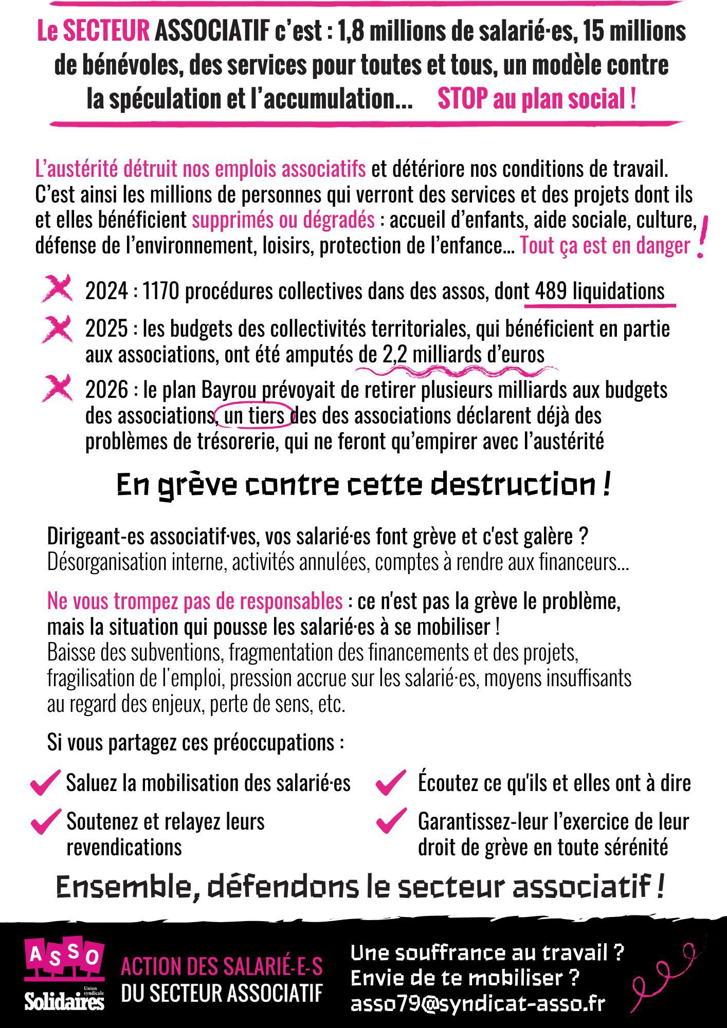 Grève et mobilisation le 16 octobre pour ASSO-Solidaires 79